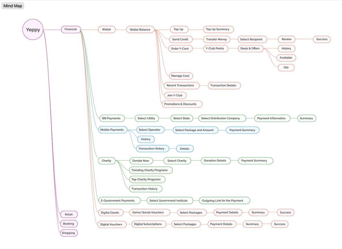 We created comprehensive mind map to visualize the relationship between various features and functionalities.