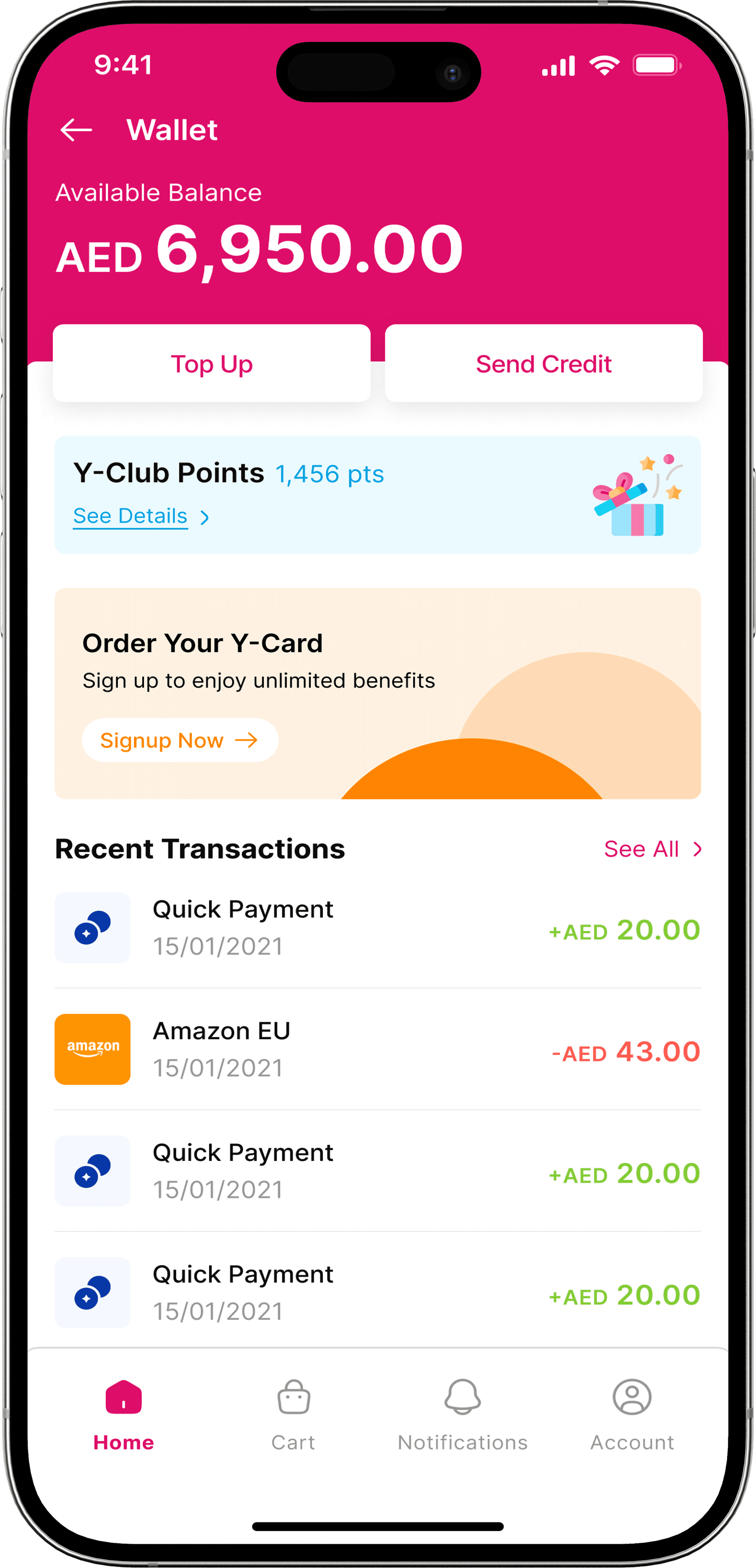 The goal was to make the wallet feel like a financial control center rather than just a balance screen. We structured the wallet to clearly surface available balance, Yeppy Club points, recent transactions, and active promotions in one cohesive layout.