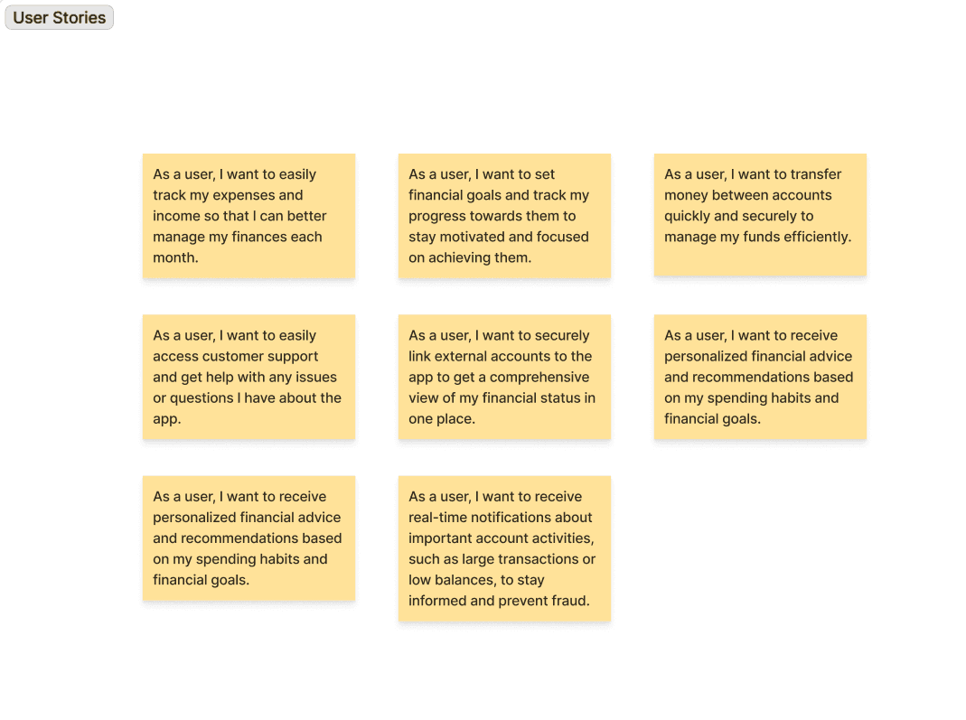 Based on research, we translated our findigns into user stories to keep the design focused on real needs: